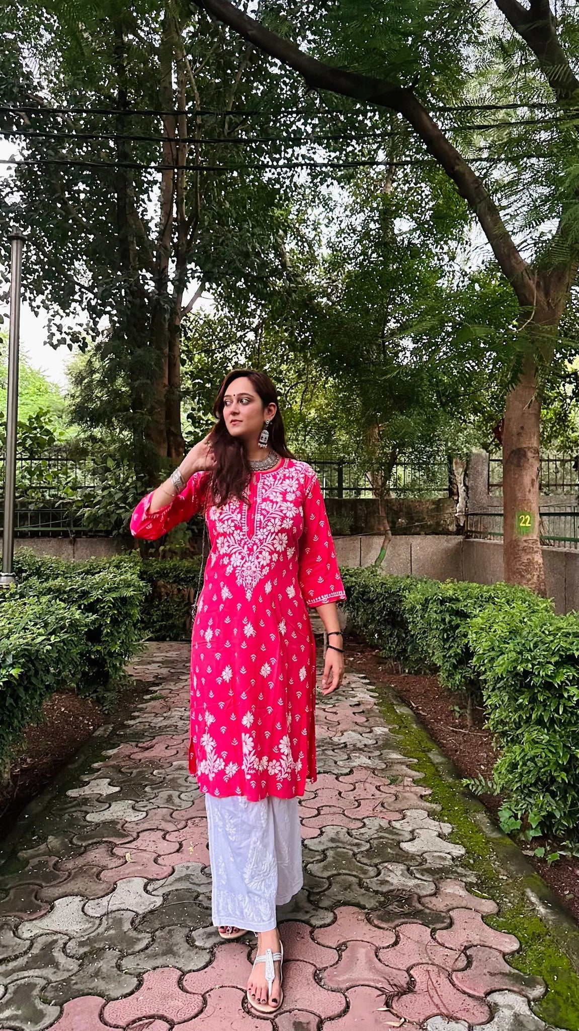 Welcome to a world where tradition meets contemporary fashion! Our Mahira Rayon Printed Chikankari Kurti is designed to make a statement. With a 100% hand-embroidered yoke and delicate bootis gracing the front and back, this Kurti exemplifies craftsmanship at its finest. No need for an inner layer - the soft rayon fabric is gentle against your skin, ensuring comfort along with style. Its radiant prints and intricate Chikankari work create an amalgamation of rich cultural heritage and modern aesthetic. A straight-fit design provides a flattering silhouette, making it your perfect partner for any occasion.