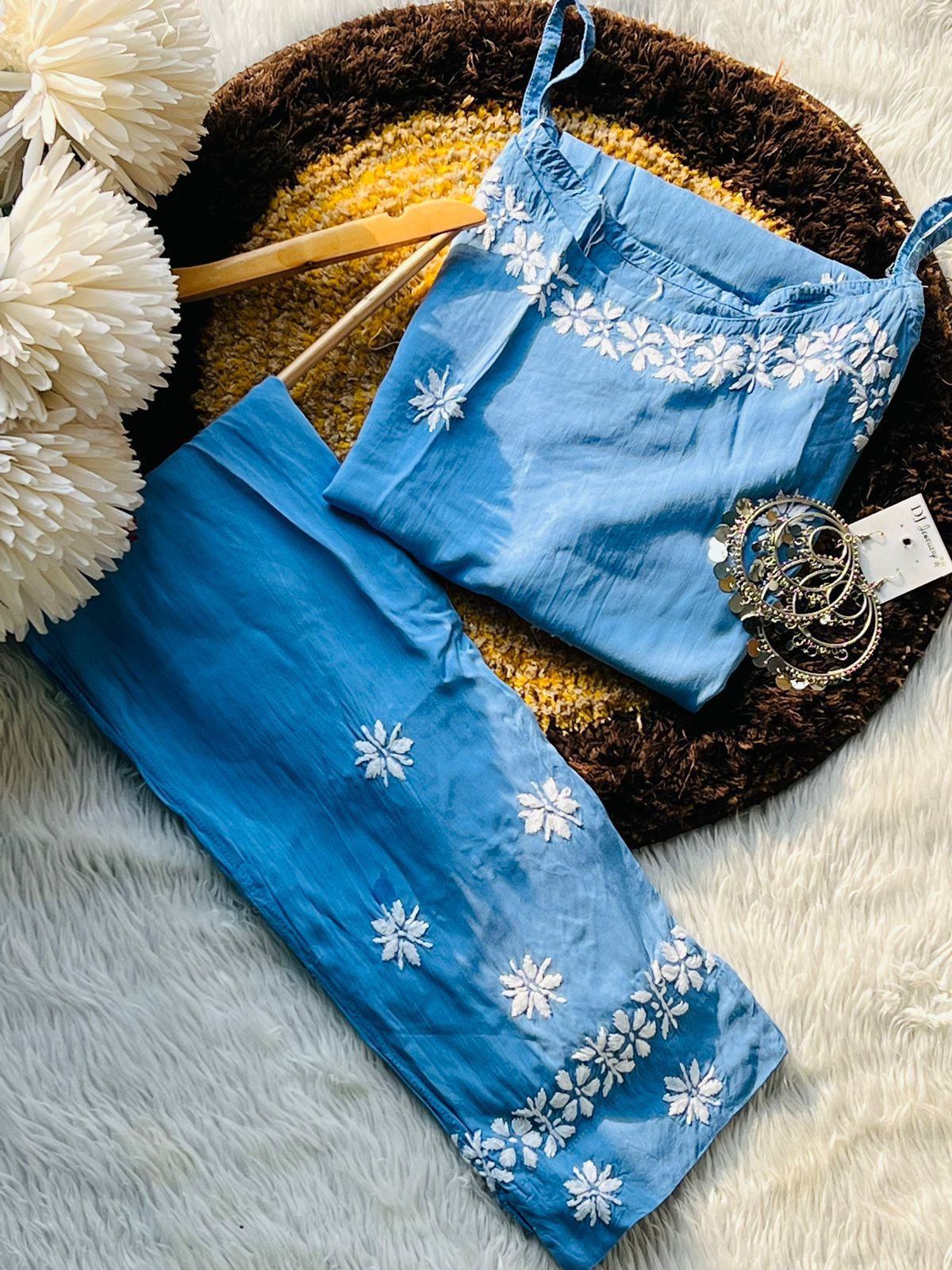 Set Includes: A beautifully tailored sleeveless kurti paired with matching pants, creating a cohesive and stylish look.
