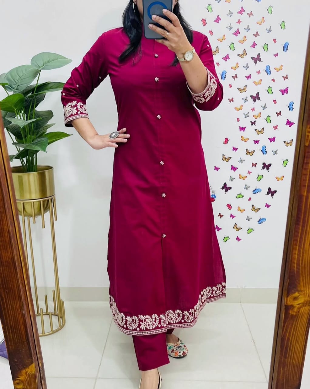 Upgrade your office wear wardrobe with this classy kurti embroidery work detailing with