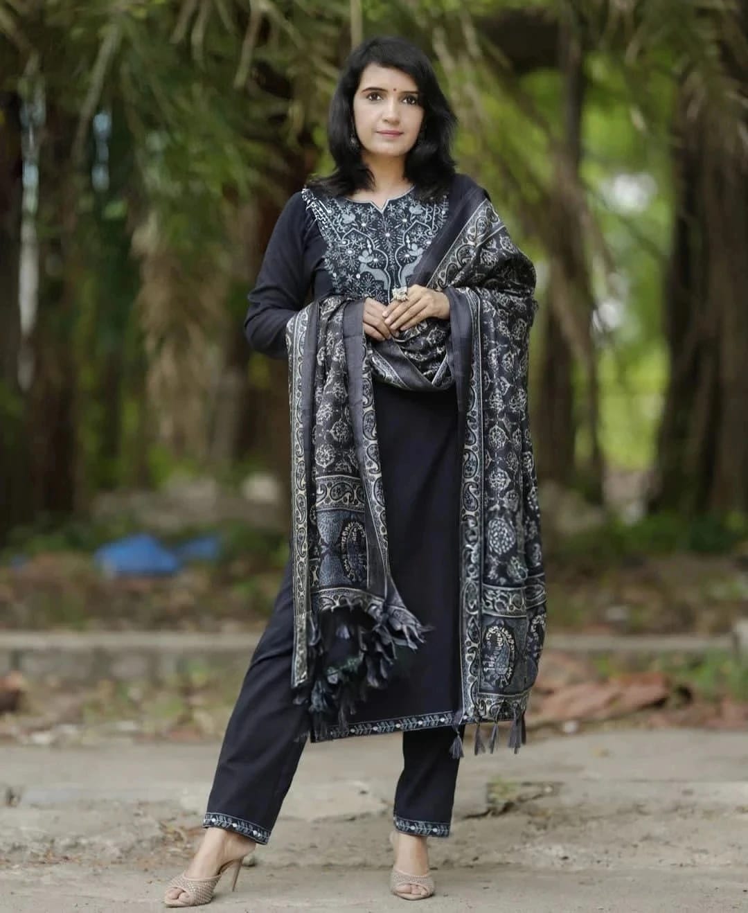 UPGRADE YOUR WARDROBE IN OUR CLASSY HANDLOOM EMBROIDERY SET WITH KHADI SILK DUPATTA PERFECT FOR ALL OCCASIONS