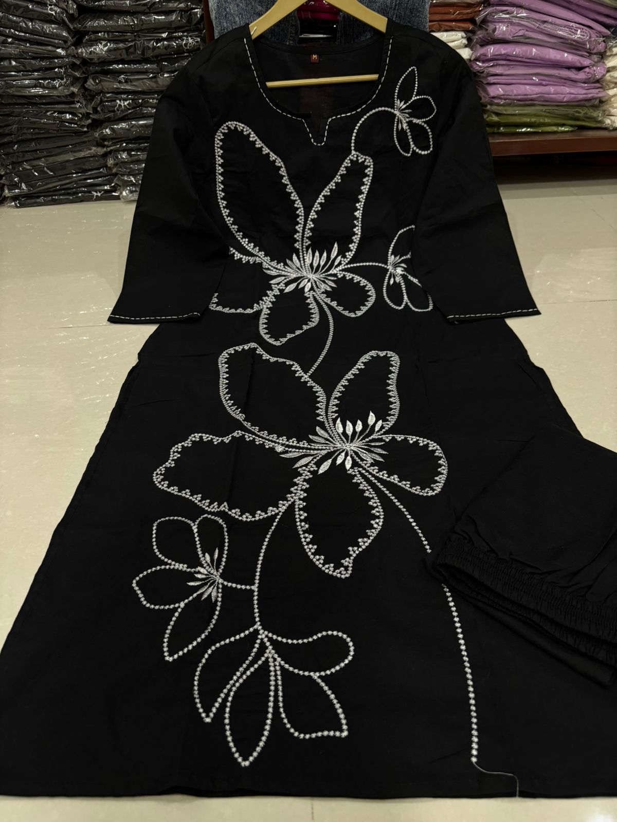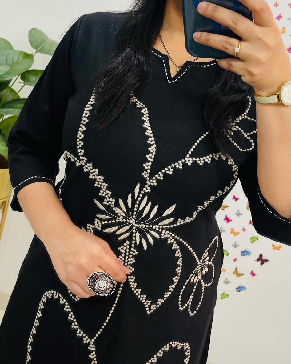 Upgrade your office wear wardrobe with this classy kurti pant with embroidery & tagai work detailing for all day comfort and trendy look🌸🌸